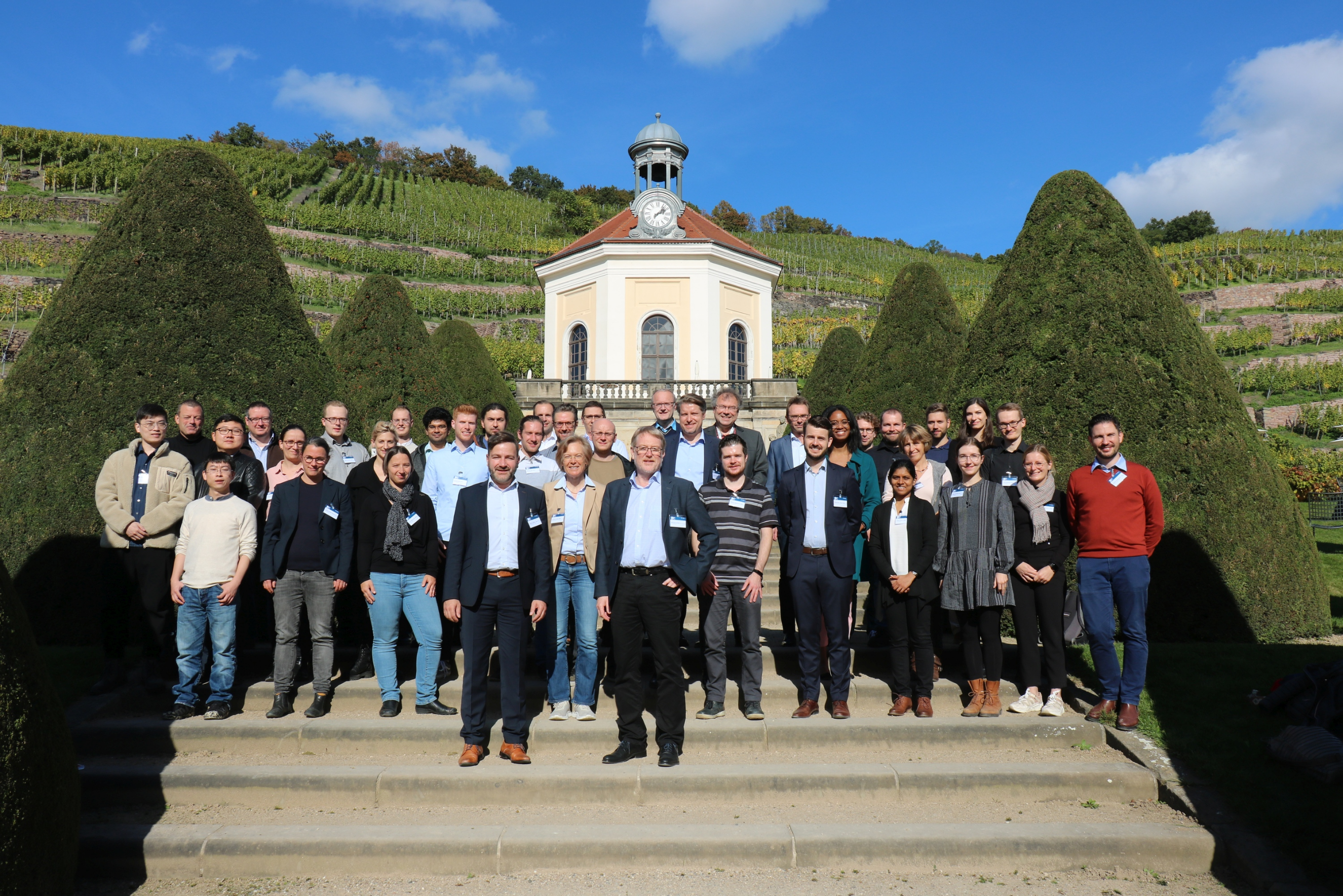 Inmitten der beeindruckenden Kulisse der Dresdner Weinberge konnten sich alle Projektbeteiligten besser kennen lernen und austauschen. Wir danken allen Teilnehmenden für eine erfolgreiche und interessante Veranstaltung! Besonderer Dank gilt unseren Gastrednern Univ.-Prof. Dr.-Ing. Alexander Popp der Universität der Bundeswehr München und Dr.-Ing. Seth Schmitz der RWTH Aachen.