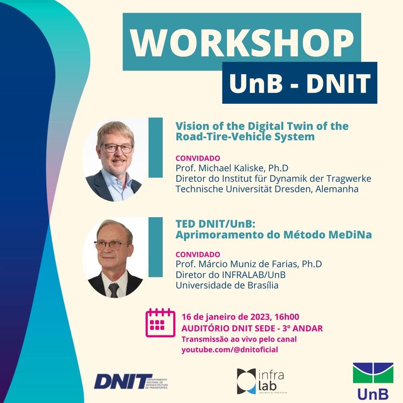 Am 16. Januar 2023 organisierte Prof. Marcio Muniz de Farias, ein führender Experte für Bodenmechanik und Straßenbau an der Universität von Brasília, in Zusammenarbeit mit Prof. Michael Kaliske einen eintägigen Workshop beim Nationalen Departement für Verkehrsinfrastruktur (DNIT). Im Rahmen der Veranstaltung gab Prof. Kaliske eine detaillierte Einführung in die Aktivitäten des TRR 339.