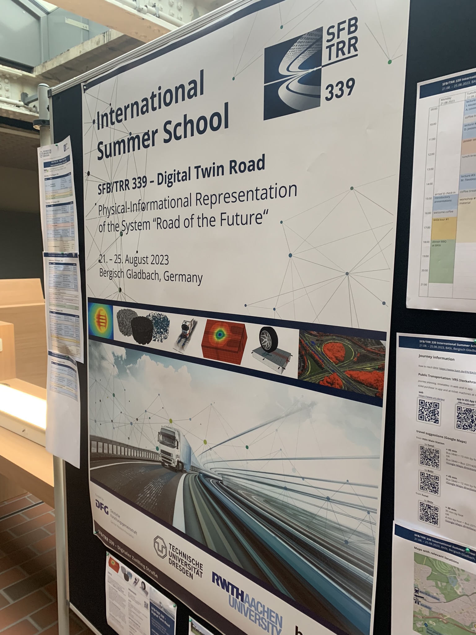 The Collaborative Research Center Transregio SFB/TRR 339 - Digital Twin Road, a DFG-funded large-scale collaborative project of TU Dresden and RWTH Aachen University, invited international scientists to participate in the International Summer School on the topic "Digital Twin Road - Physical-Informational Representation of the System "Road of the Future" from August 21-25, 2023. The event took place at the Federal Highway Research Institute (BASt) in Bergisch-Gladbach.