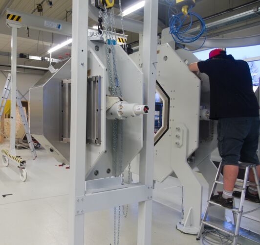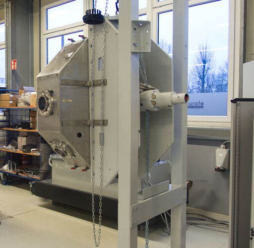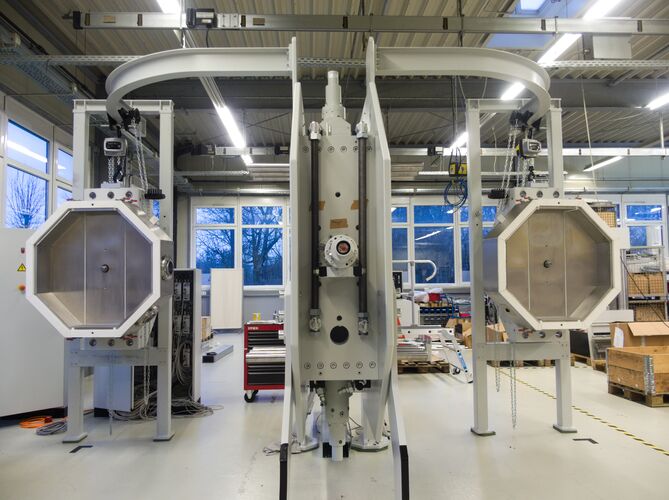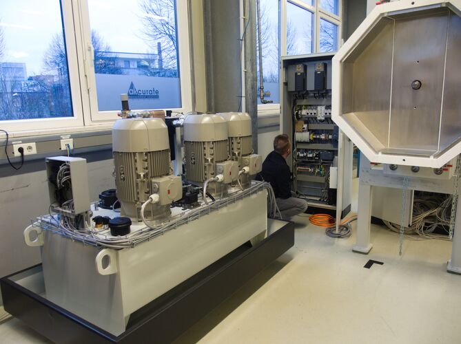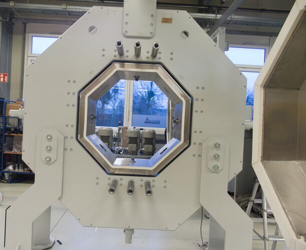 The TTT facilitates the characterization of the behavior of bound road construction materials (e.g., asphalt, concrete) under triaxial loads with load parameters relevant to roads, such as traffic, temperature, and relevant load frequencies. The generation of loads up to 63.5 kN with loading frequencies of up to 10 Hz is achieved on cube-shaped test specimens using hydraulic cylinders under sinusoidal tension-swell, compression-swell, and tension-compression alternating loads. This is performed within a temperature range of -20 to +70°C. The rheological phase-shifted response of the material to the load pulses allows the load maxima in the respective load directions to occur with a time delay. The resulting elastic and plastic deformations are measured synchronously in all directions with an accuracy of 1 µm. The TTT facilitates the unprecedented characterization of the material behavior of road construction materials under realistic loading conditions. The findings provide a foundation for developing models that simulate the behavior of these materials and, consequently, for the structural modeling of road pavements in collaboration with various sub-projects of the SFB/TRR 339 "Digital Twin Road." The aim is to develop a suitable method for predicting the service life of road pavements in order to optimize the construction materials and structure of road pavements according to sustainability criteria.